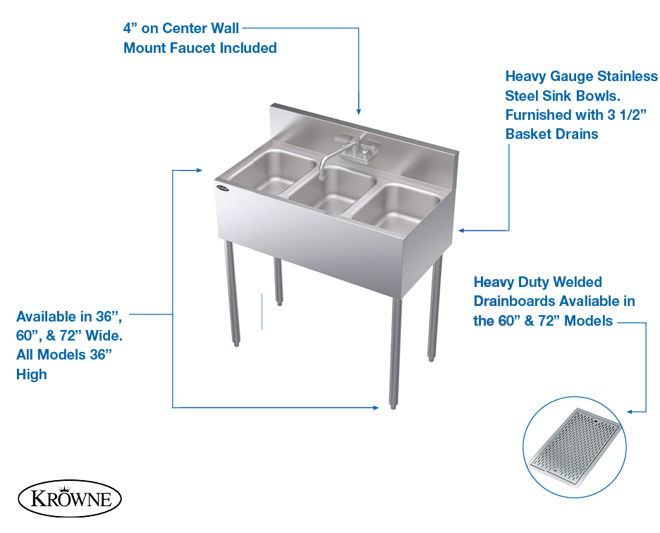 Krowne CS-1872 Convenience Store Sink - Optimal Efficiency for Professional Kitchens